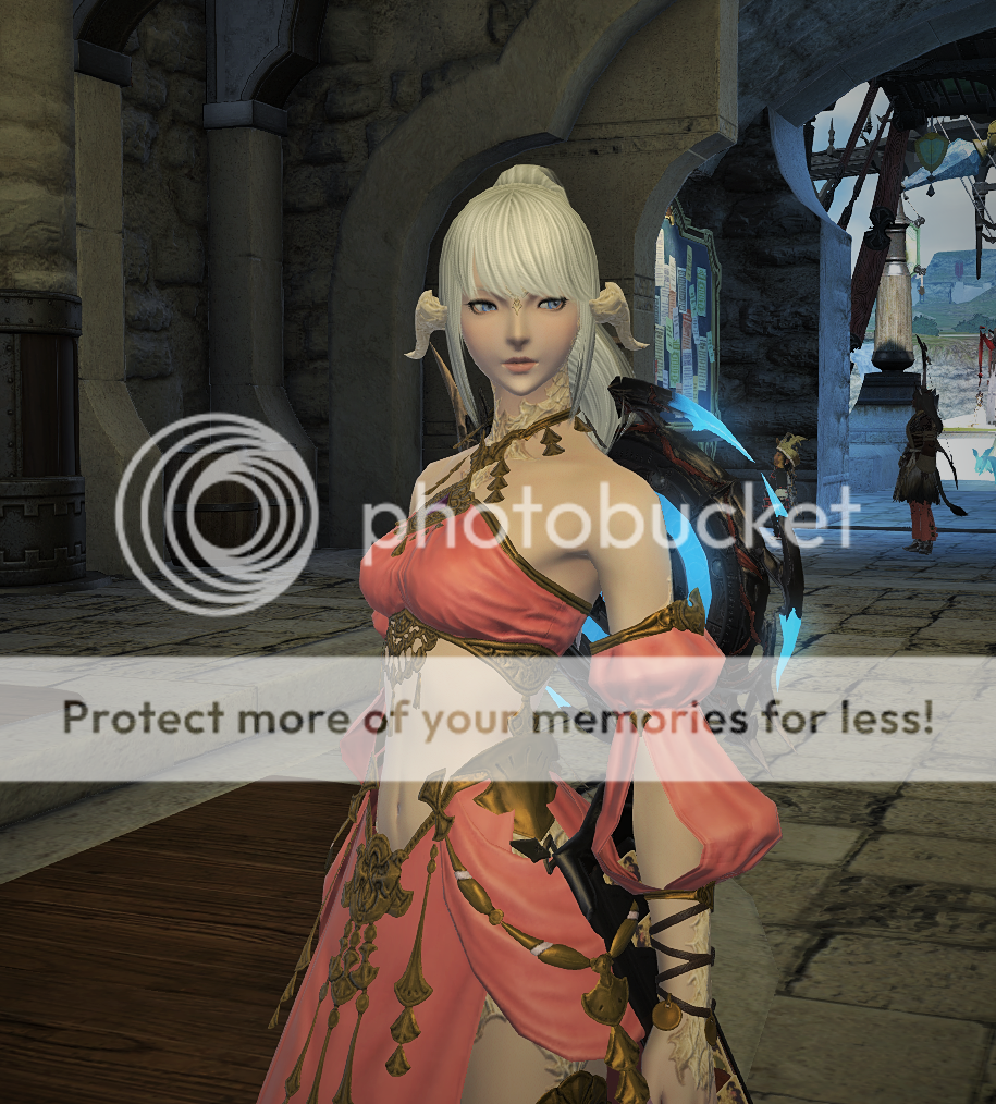 I was going for a vaguely tribal look, but there's a distinct lack of matching tops for female SMN for that (people may complain about males not getting as much vanity options as females, but I think what they do get are much cooler). About all I could think of was the coeurl halter but I dont like that ):