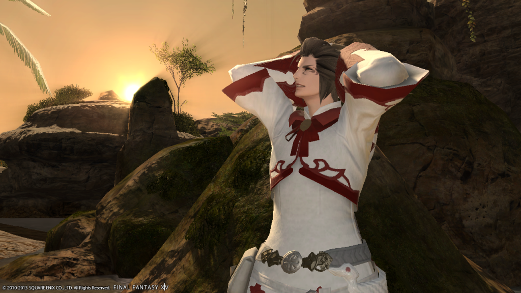 Maximum-height Roegadyn Pugilist in purple Hempen Tights. When I run through town people are always yelling something about "Smash"?