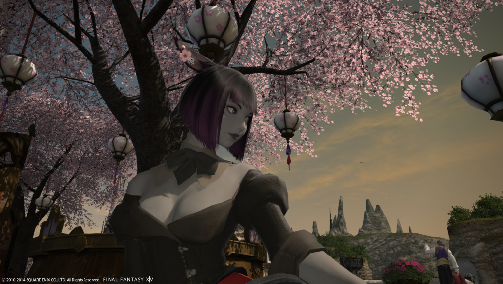 The cherry blossoms feature prominently in this seasonal event, so I took this shot from a fitting, distant vantage point.