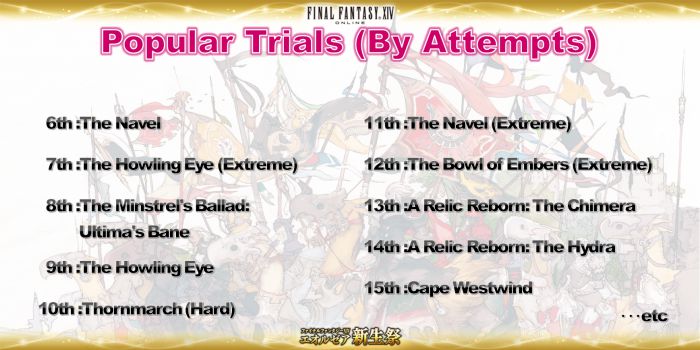 We're pleased to present the Eorzea Census that were presented during the Letter from the Producer LIVE in TGS. Please take a moment to give a closer look at the latest on various data within Eorzea!