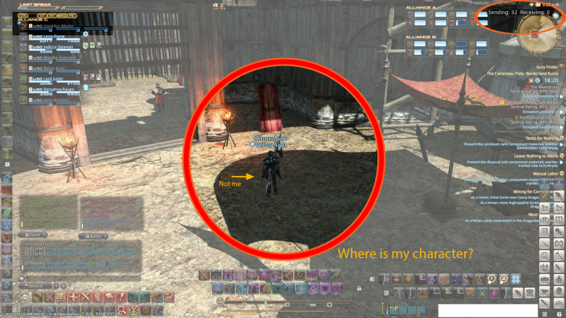 Yeah, I'm having the same issue, too. Seems to happen every weekday for me (like right now, which is why I'm posting), from about 3pm PST to at least 7pm PST from what I can tell. Sending/Receiving drops to 0 in-game, players and mobs stop moving then quickly flash to a new location as if the data is catching up, and actions like warping/zoning, gardening, or just checking your friend's list take a moment to even occur.