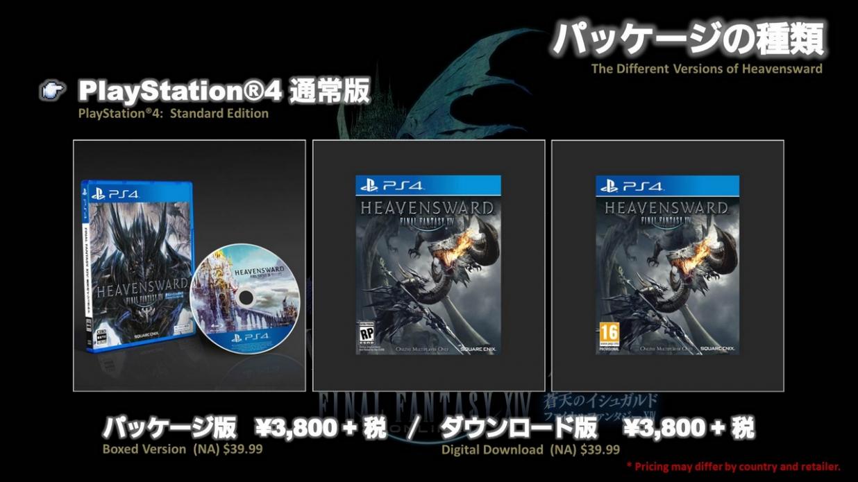 PlayStation®3の通常版は、先ほどコメントしたように欧州は、ダウンロード版のみで、パッケージ版はありません。こちらの日本での価格は、税抜きで3,800円となっています。シンプルに「蒼天のイシュガルド」をプレイしたい方は、通常版をご購入ください。