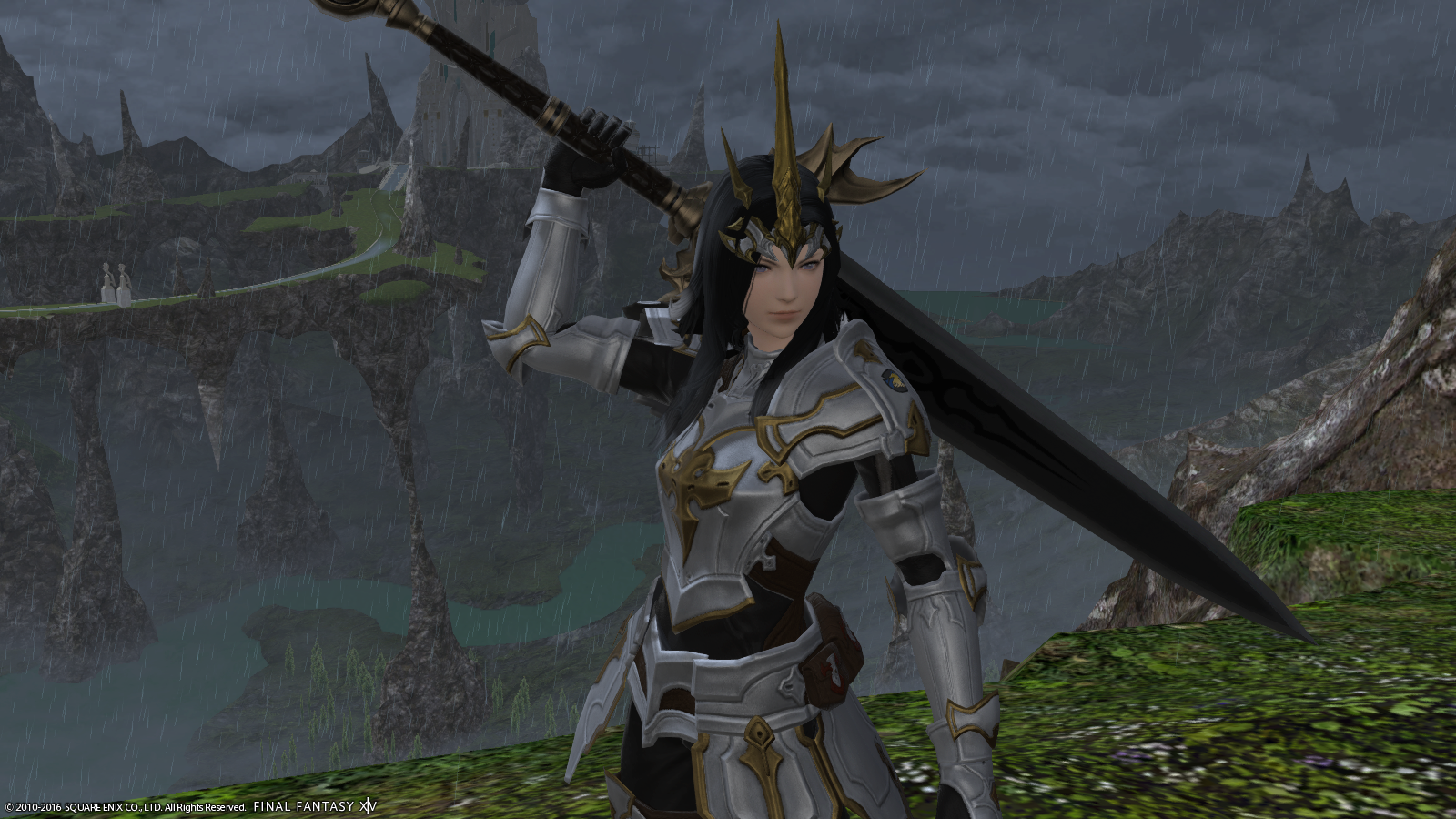 Honestly though... my character is no catgirl. Or dragon girl. Or half-naked. Or in skin-tight clothes. Not really glow in the dark, either. Just a generic old hyur in bland ol' armor with a by the books greatsword. A female knight... which is far less common than I expected. I tend to go unnoticed in crowds.