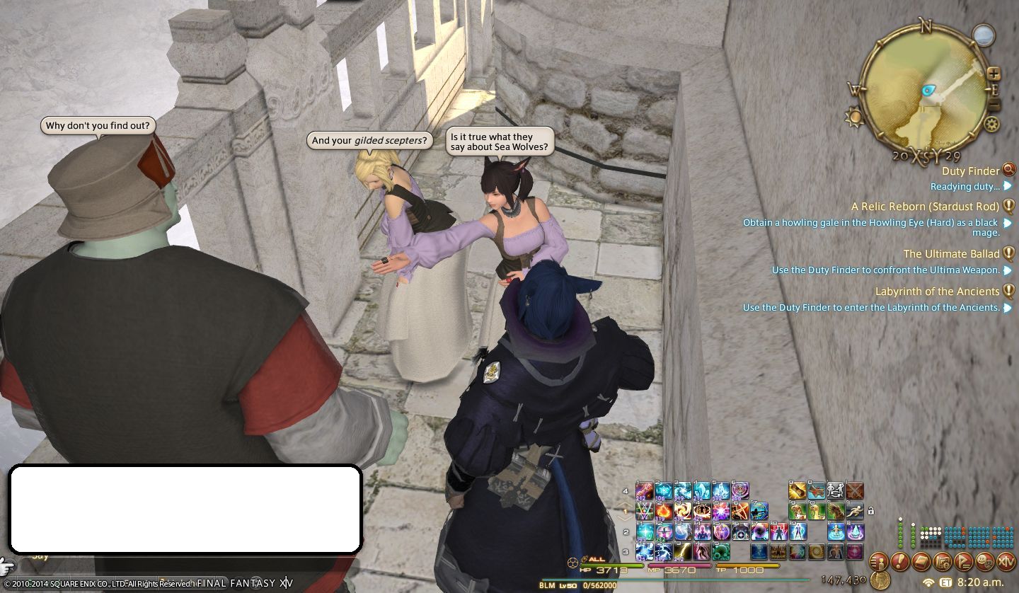 Because even if those 7000 players on each server were all actual real players and none were RMT, then yeah that be kind of impressive, but it still wouldn't quite be enough to tackle the full force of Garlemald. We aren't all together in this, as the story is written there are not thousands of Warriors of Light, there are more than one though, yet even still we are treated in the story almost as if we are the only Warrior of Light (yet it has been said all those Adventurers who fought in Cartenaeu were Warriors of Light). We, as far as the main story seems to imply, even though stated otherwise, seem to be the only real Warrior of Light/Hero. So MSQ-wise, each and ever one of us (meaning just one of us) is the Warrior of Light. In fact the only time we are considered to be useful more than just our own characters seems to be when we are told to gather other adventurers to fight together (like the Steps of Faith), but otherwise MSQ it seems it's just each and everyone of us individually take part in the story.