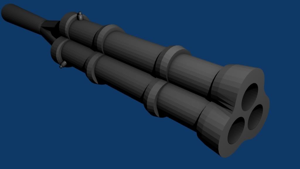 I made a 3D model of the 3-Barrel Pole Cannon. Do you think that this has the FF14 style?