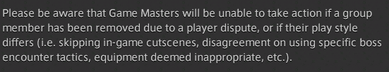 So I basically was telling our monk to start caring about the dungeon's mechanics, and even about the positionals, which monks are all about. He said he was lagging really badly, which was pretty much a lie since if you're lagging badly enough to ignore the mechanics or not care about positionals, then everyone could notice it. The thing is, does the text in that picture mean they basically won't get punished? I got kicked because I kept telling them about that, they just didn't like me telling them so I got kicked, wasting quite some of my time.