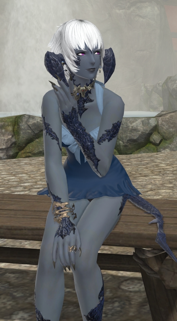 thanks! i'll take more in my other glamour that dosent hide him and have better lighting. he is a handsome au ra.The glamour is nice! Somewhat hard to tell the details and colours since the lighting is dim, but yeah, I like it.
