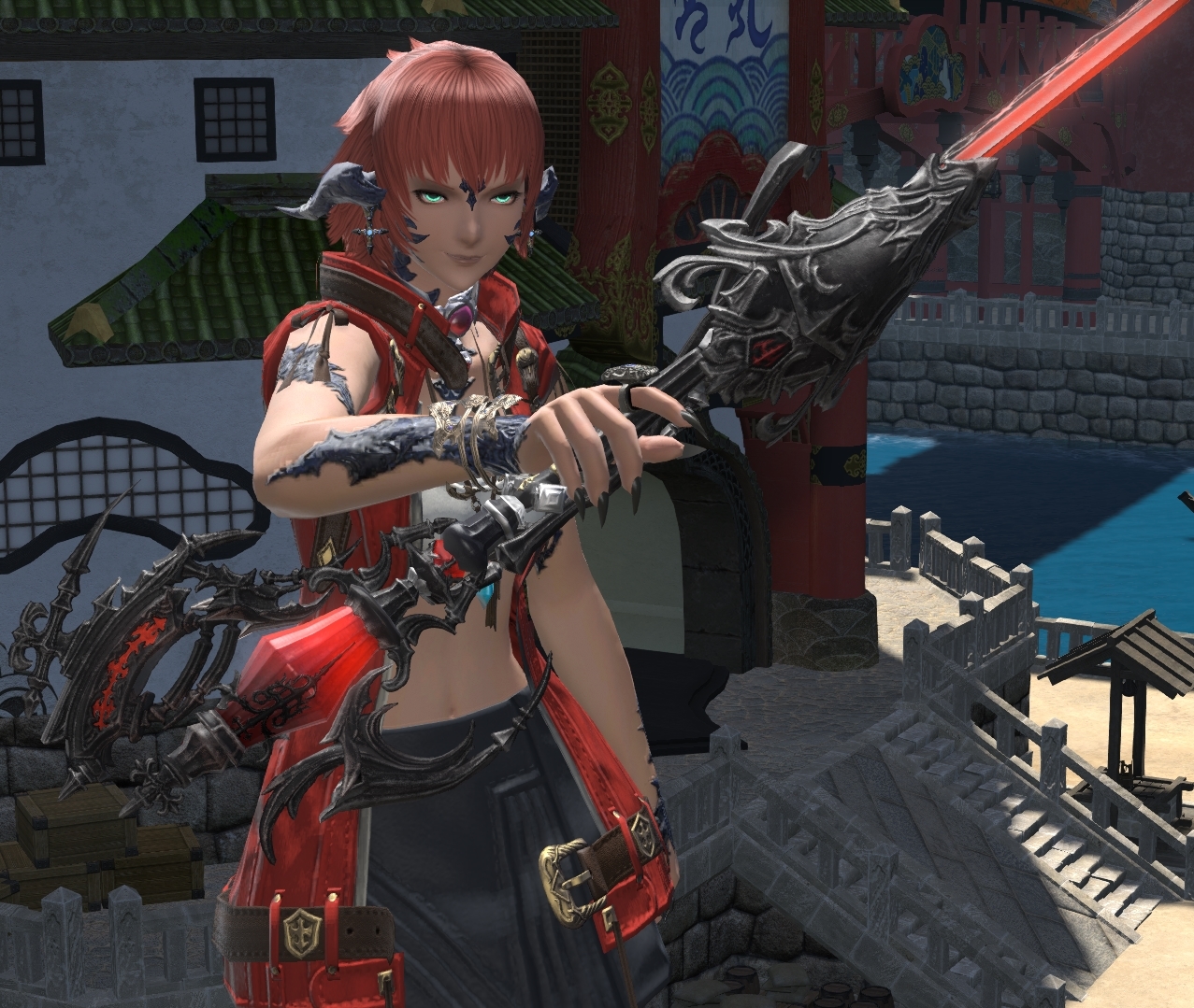 I couldn't get the dark skin to work so I used it as inspiration to make this. Probably goes better considering I mostly play a red mage and lets be honest they should have more red than anything. Unintended playing with this model but she does have a bit of a "dark" vibe to her: