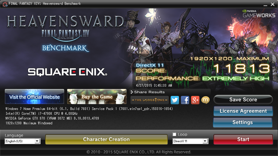 Very happy with my score i was thinking i could not play ffxiv on DX11 at highest settingMaybe down the road i upgrade my video card so i can play at 1080p but for now i'm happy with my monitor size.