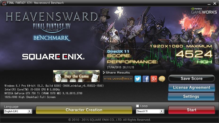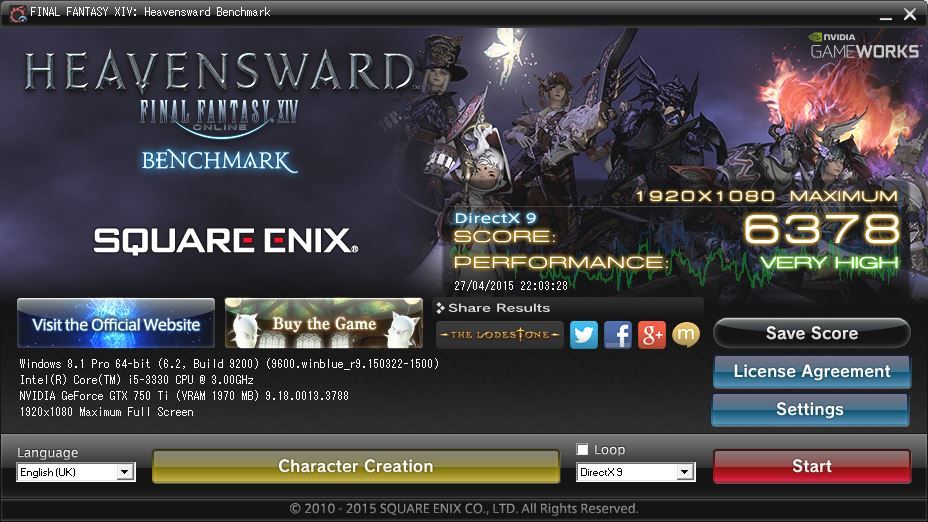Benchmark results do not provide any guarantee FINAL FANTASY XIV: A Realm Reborn (Windows version) and FINAL FANTASY XIV: Heavensward (Windows version) will run on your system.