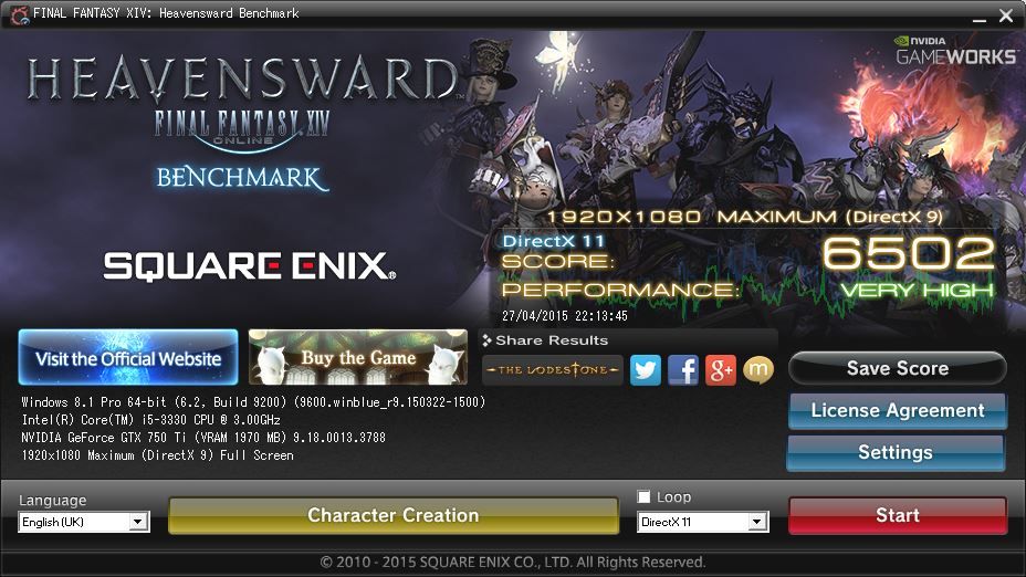 http://sqex.to/ffxiv_bench_na #FFXIV 1280x720 Preset 2 DirectX11 Windowed Score: 6543