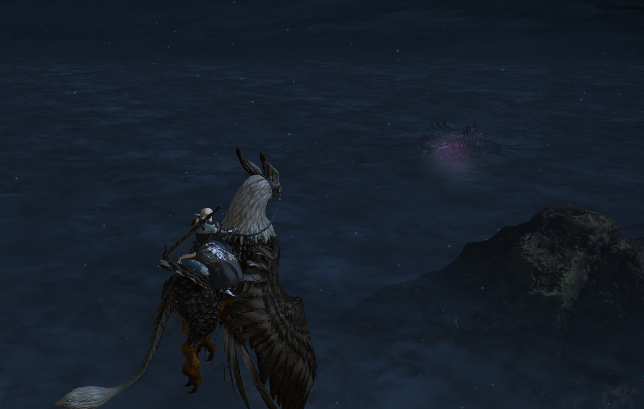 Now I seen this at The Cherning Mists 14,2 and 26,2 way down under the floating islands looking north off the map. And I see this ship flying around or just siting on the clouds. It has pink-ish lights on it. Could it be future content? Or a U.F.O.???