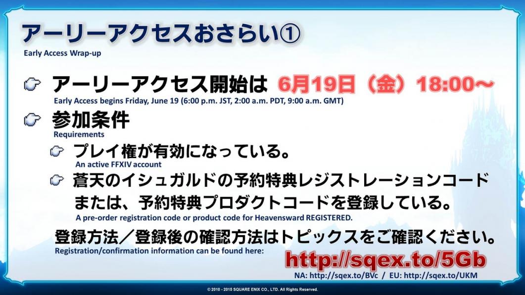 If you’re watching this now and haven’t pre-ordered, but would like to join in on early access, you’ll need to go directly to a retail store offering Heavensward pre-orders, confirm that you can still pre-order the game with early access, receive a physical early access code, and register this code immediately. Alternatively, you can pre-purchase the digital version of the PlayStation®3 or PlayStation®4 version.