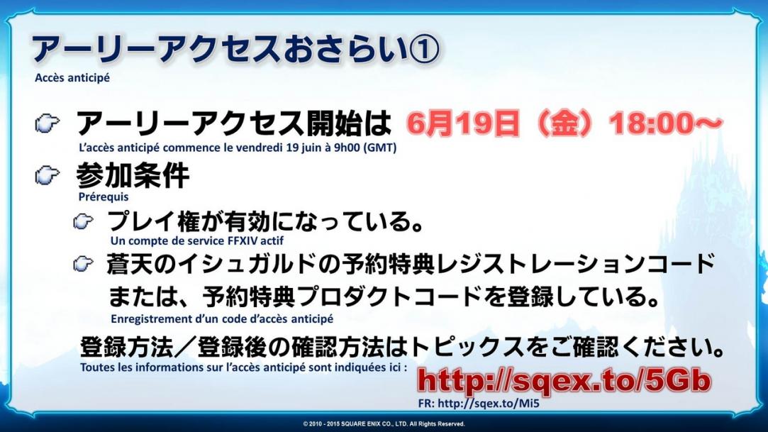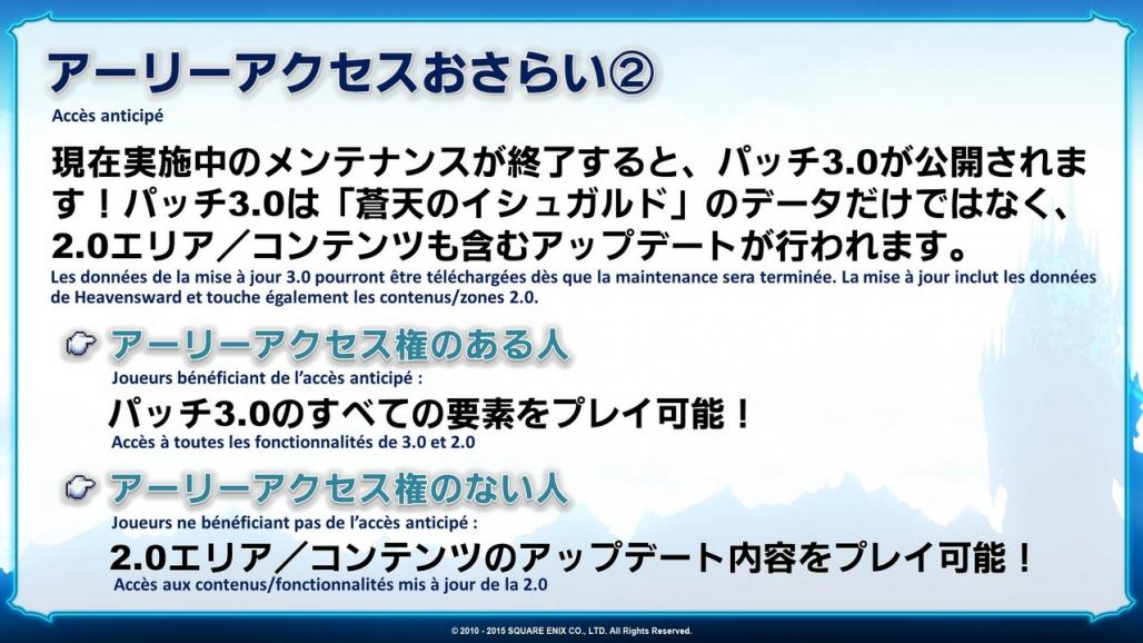 *Veuillez lire cette page pour plus de détails concernant les préventions prises contre les congestions pour la sortie d’Heavensward.