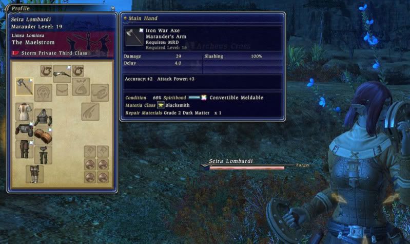 Can you see whats wrong with this picture? This was my friend that was stuck in place but was going all around with us and fighting. I just couldn't see her, because on my client she was stuck at that very spot, for like thirty mins until all three of us logged completely out. Also if you didn't figure out the real kicker out of that pic. Shes on MRD but the weapons she has out is her PGL. So more or less the server stopped sending all data. well not all. If she was fighting with us you'd see her swinging wildly in the air right there where she stands. But if she put her weapons away, or got on choco, non of that occurred, she just stood there battle ready.