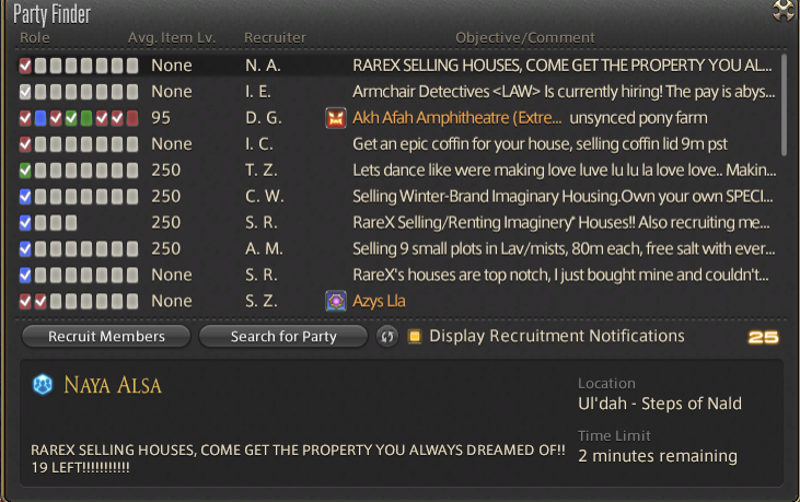 The screenshot above shows Rare-Ex on Balmung server having bought houses to resell for much higher prices. It also shows a bunch of joke/troll comments below it, ridiculing it. But think for a moment--even if *all* of this were a community joke or troll, it would be a joke about the fact that there are a lot of people who want a house and can't get one, right? The situation just has to be fixed.