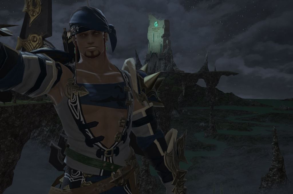 Falknerhemd (hell gefärbt, das hier ist seenebelblau), Falknerhose, Adels-Stiefel. Ich weiß natürlich nicht, wie dieses Glamour an einem Miqo'te aussieht, aber für einen Elezen wie Aru geht es nicht sehr viel männlicher als Barde![]()