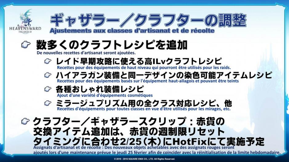 Pour le machiniste, c'est un job difficile qui permet d'infliger un montant important de dégâts à certains moments, mais dont le niveau moyen de dégâts par seconde reste inférieur à celui des autres jobs. Nous effectuerons donc quelques modifications. Le Péan du Contemplateur du barde sera aussi ajusté.