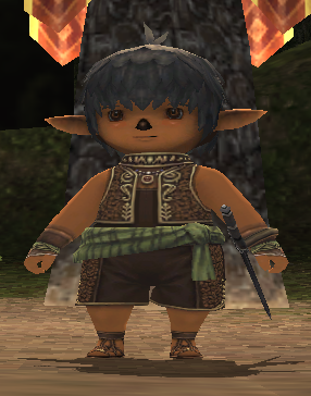 I made myself a Lalafell because they're adorable and I like cute things and I like small things. Then I tweaked his face and hair to whatever I could find that would produce the most serene, adorable face I could. Then I went full tank, because watching a person shrug off hits from swords twice as wide as their entire body is funny.