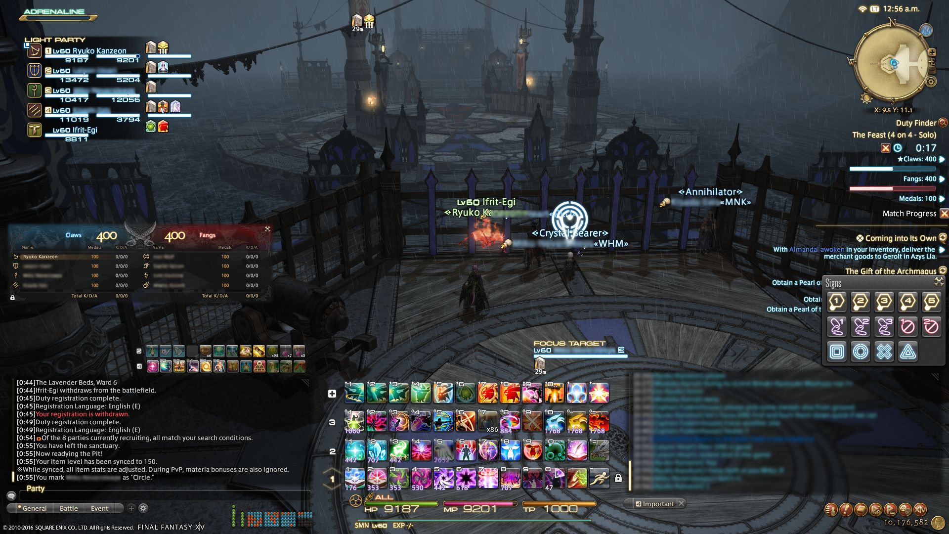 Anyway, I don't think you necessarily did anything wrong to cause that match to be lost. It seems your team had trouble killing people too... But as far as staying alive, I think it would help you if you anticipated a lot of incoming damage. For example, BRD has a lot of burst, and you faced one in your match. As soon as you are targeted by them, you are going to want to throw a wrench in their plan to burst you down in one go by running behind a wall and healing yourself back to full before they can sprint around and continue attacking you. This will ensure that they can't take you down from half HP to Zero in one go (and yes -- BRD and MCH are capable of this). I know you do start to make a move toward a wall when you notice you are being attacked, but in general, you will want to be positioned near a wall already. That way, you can LoS a ranged as soon as they start attacking you, forcing them to actually run after you. (That sort of advice goes for any caster -- whether they be offensive or defensive.)