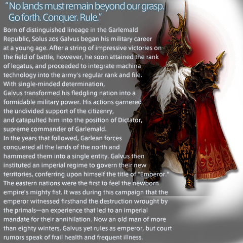 Oh, and here's Solus zos Galvus' old bio for you, ya Garlean history junkie: