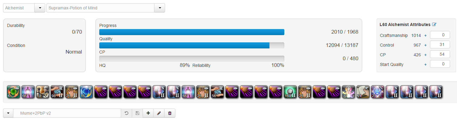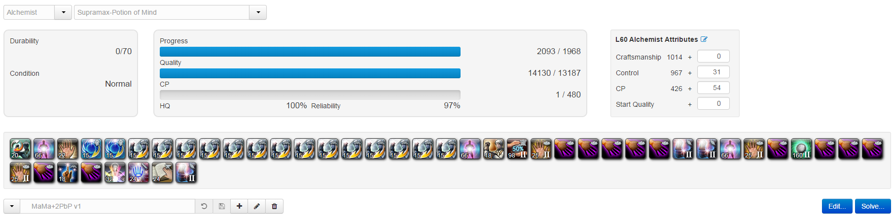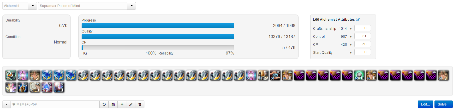 Next up is MaMa+3PbP+1CSII, the safest rotation out of all options, works for every difficult craft, while having the safest options completely ignoring your craftsmanship it also has the lowest HT.