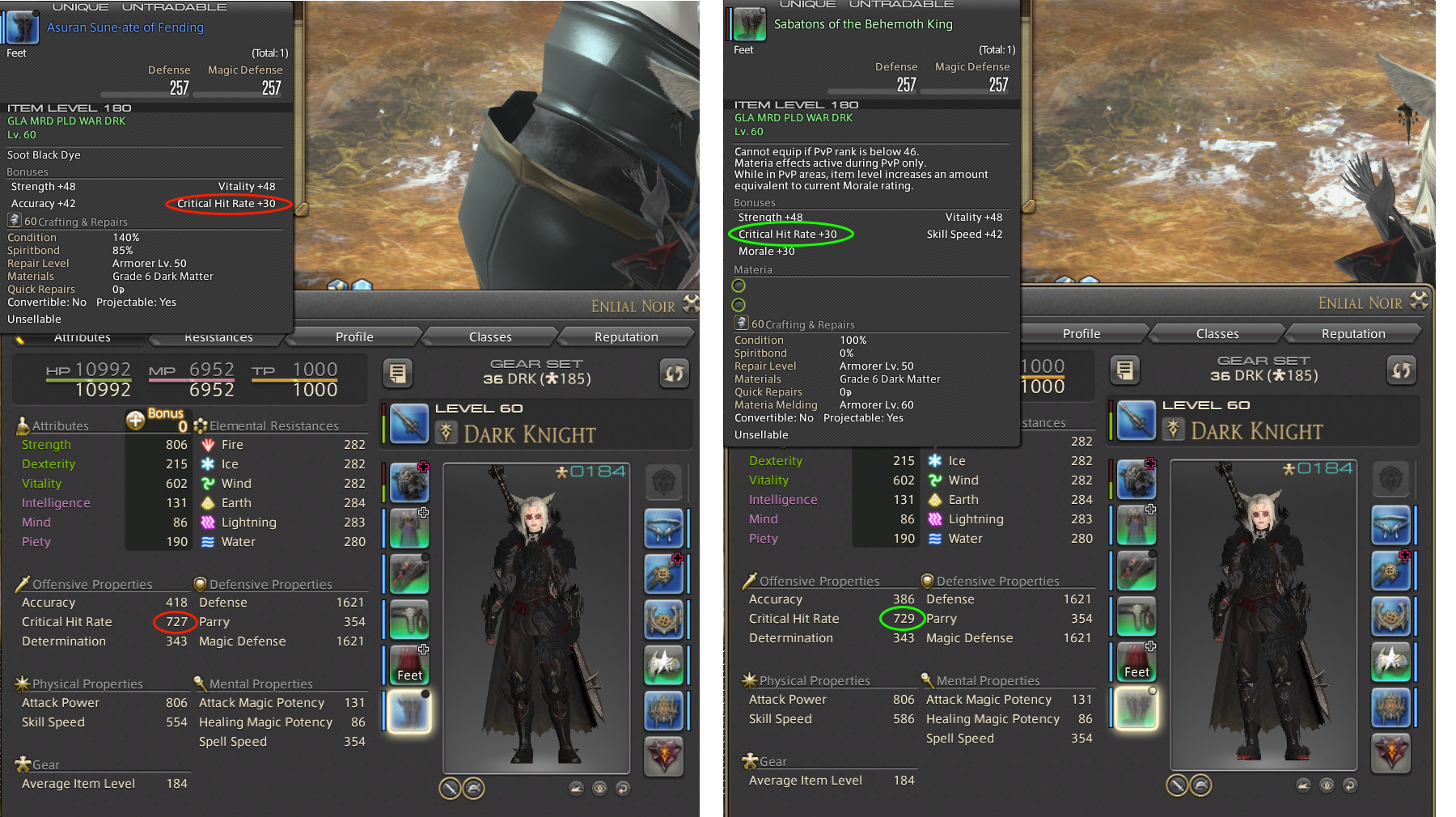 I made this awhile back showing the difference. The 180 pvp boots give +2 crit over the 180 tome boots, due to morale.
