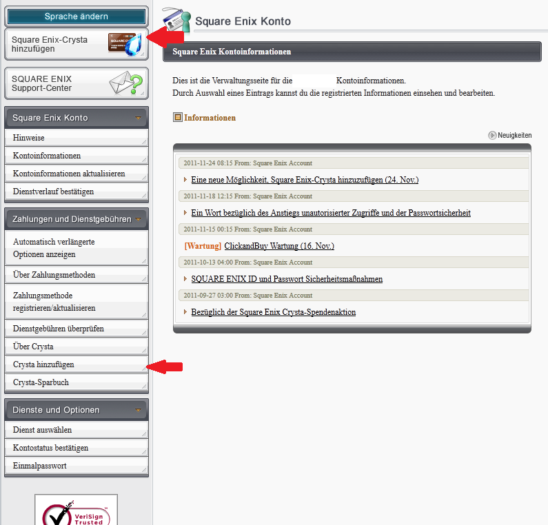 Von dort aus gibt es dann zwei Möglichkeiten Crysta zu kaufen, einmal durch einen Klick auf den grooßen Button oben oder auf den kleineren weiter unten, auf dem Bild sind beide mit roten Pfeilen markiert