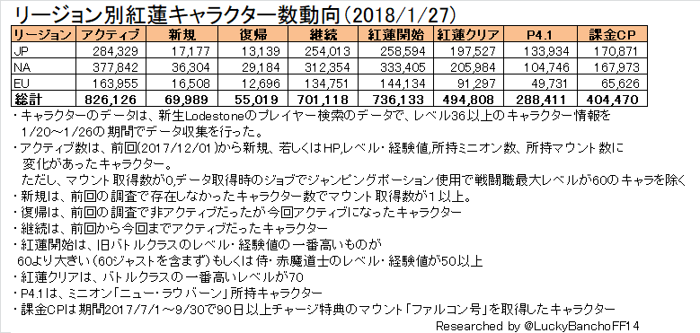 Lodestone Survey Active Characters of 27.01.2018 (with UCOB clears)