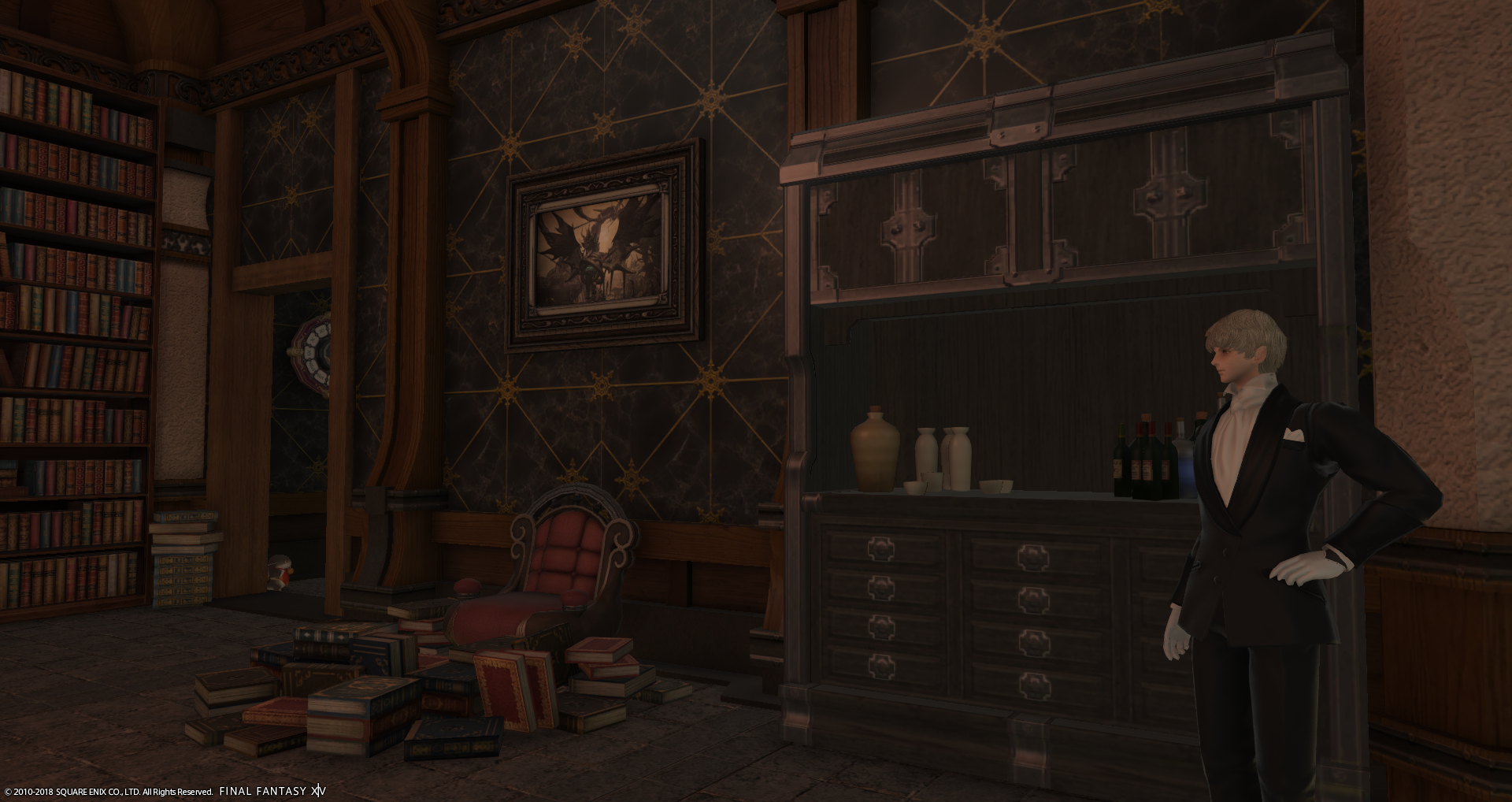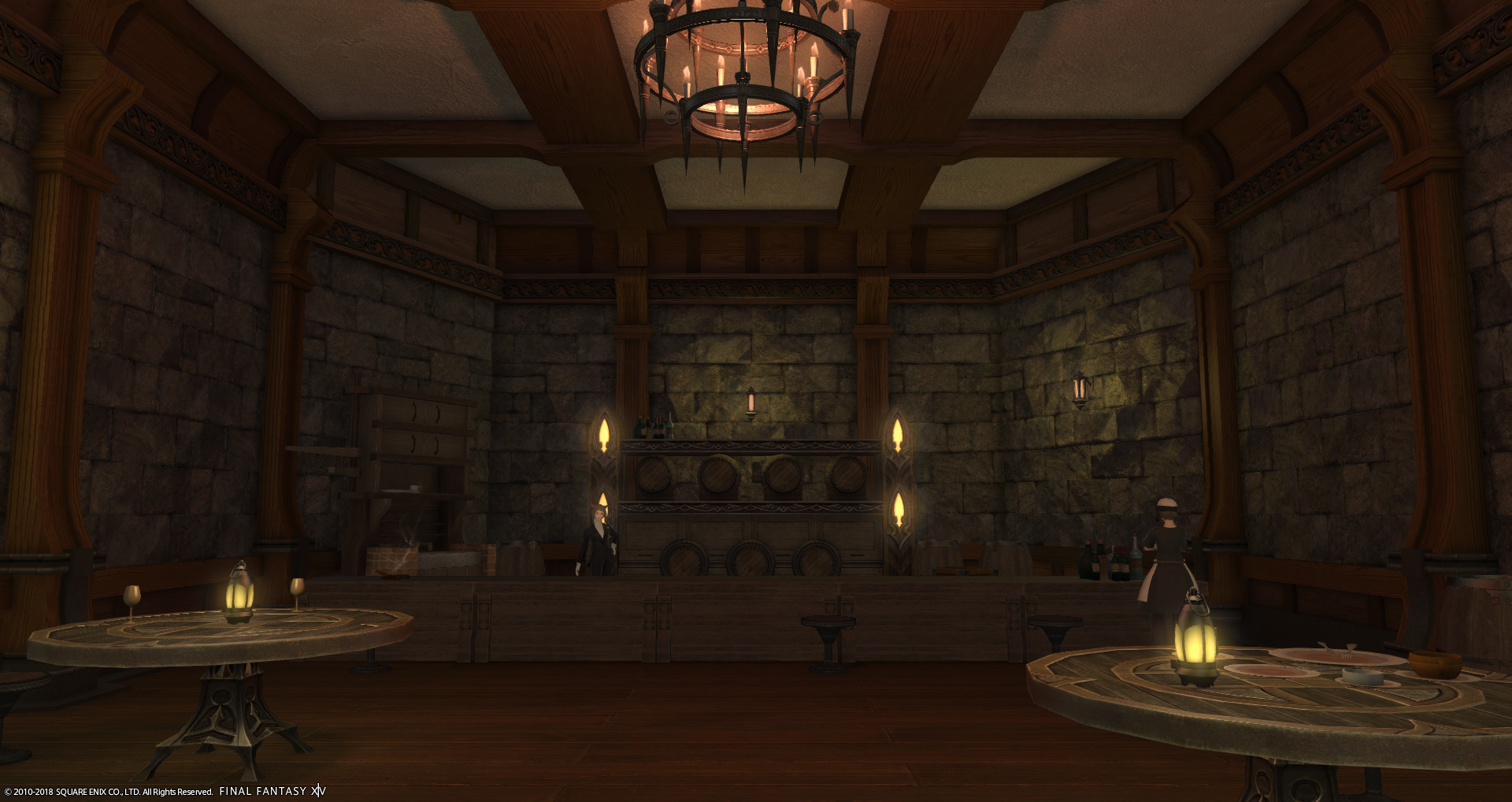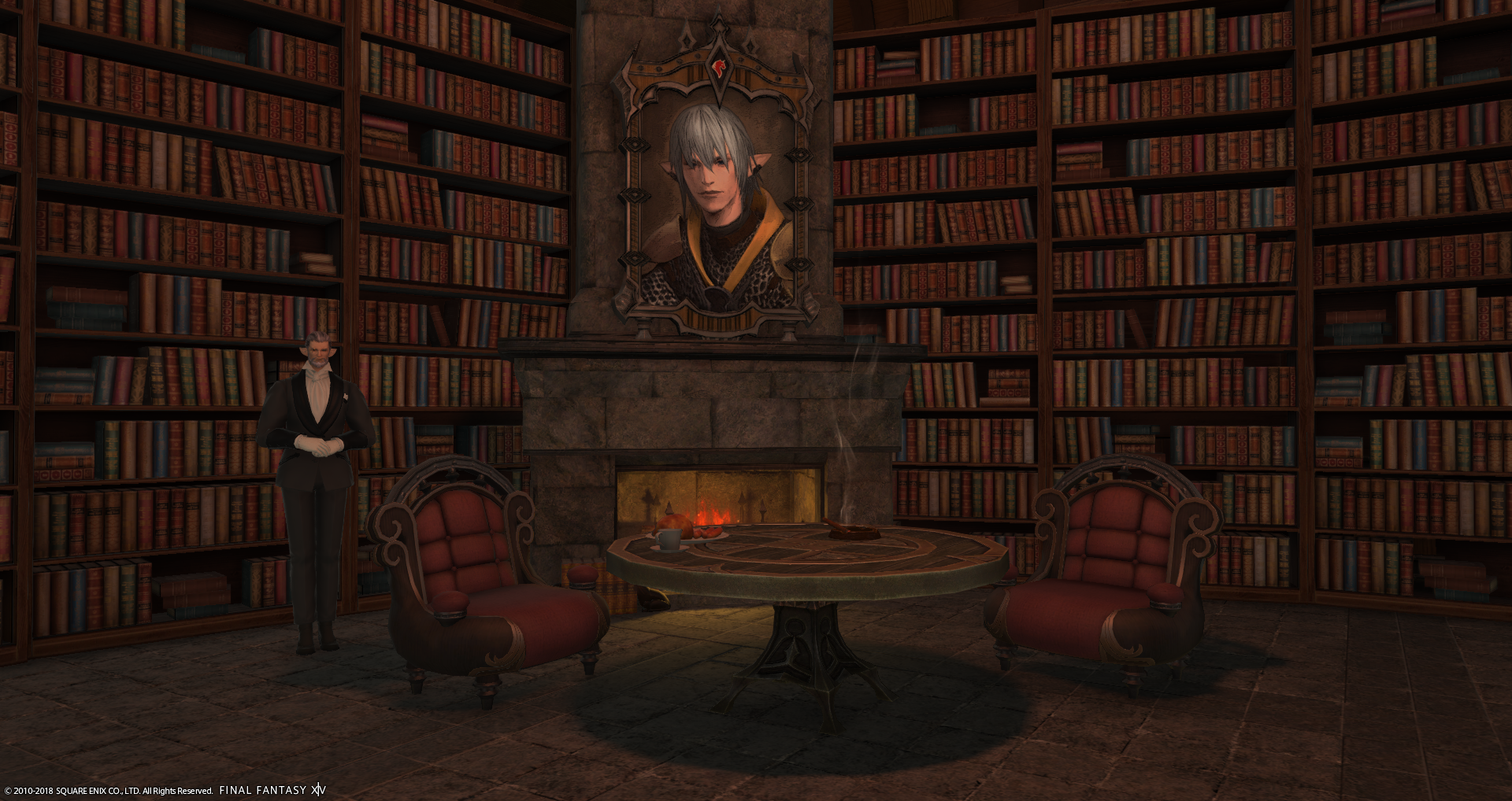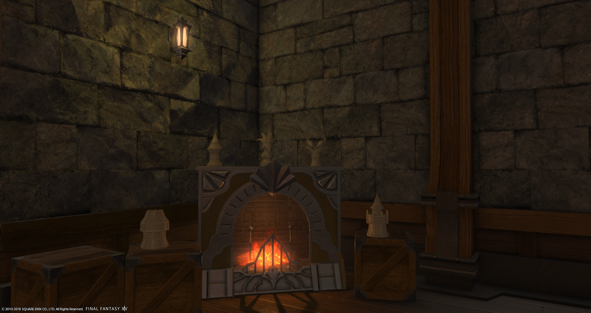 Der kleine Kamin in der Bar wird von den Spielfiguren im Ishgarder Stil umrandet, bei einer größeren Gesellschaft wird gerne mal das ein oder andere Spiel damit gespielt.