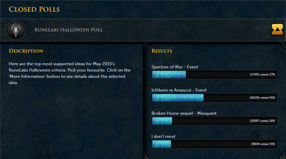 And a vote is a great way of the player base getting to avoid what they don't want. For instance, this Halloween events lame offering could have been avoided had the Players been able to vote on what the event was going to be about. But this would only work if SE is actively engaged with the community. But I honestly can't see a downside if they were engaged with the FFXIV community.