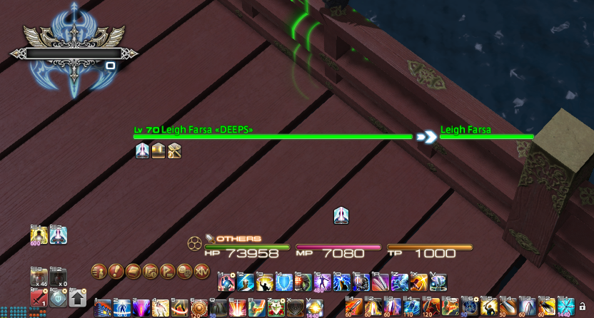 EDIT: PLD is definitely the job with the most abilities on the hotbar due to situational abilities. DRK came close where under a similar setup to my PLD it has 2 free spot on my bar as you can see here. Salted Earth is on my bar twice as one is a macro with <t> and the other is manual placement. (Pot is Ctrl+1 on DRK :P). The second LD icon is a macro that screams in party chat: I'm DYIIIINNNNGGG! HEAL PLZ! with the most annoying <se.#> effects ever. Since random healers are.... random.