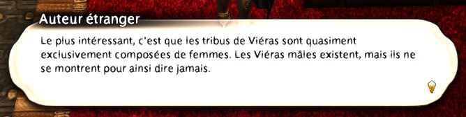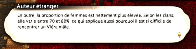 je me rappelle pas d'une mention d'une autre tribus de viera, surtout que pour le coup les feols et les viera dans FF12 on peu voir pas de contact. hors ceux qui quitte la foret... je me rappelle d'une mention comme quoi dalmasca a de nombreuse race d'homme bete, mais pas de mention d'une deuxieme tribus de viera.... surtout que si on suit l'histoire du raid, les viera dans dalmasca sont de la meme tribus que fran. apres il s'agit peut etre des males, vue que les males et femelles dans la foret vivent separer l'un de l'autre donc ca pourrais expliquer...