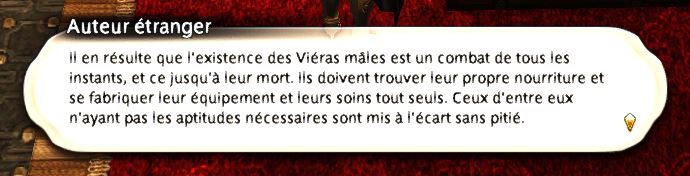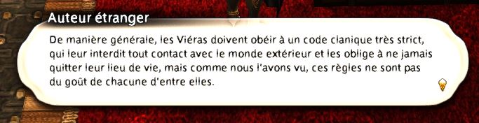 merci pour l'info, mais dans le cas present ca colle au lore, les feols sont plus clair de peau que les viera, plus ca ferais bizarre d'avoir deux clan de la meme race qui utilise un nom different. a voir s'il vont suivre les meme similitude que viera/feol pour les veena/Rava.... dans tous les cas on auras la reponse lors du fan fest de tokyo