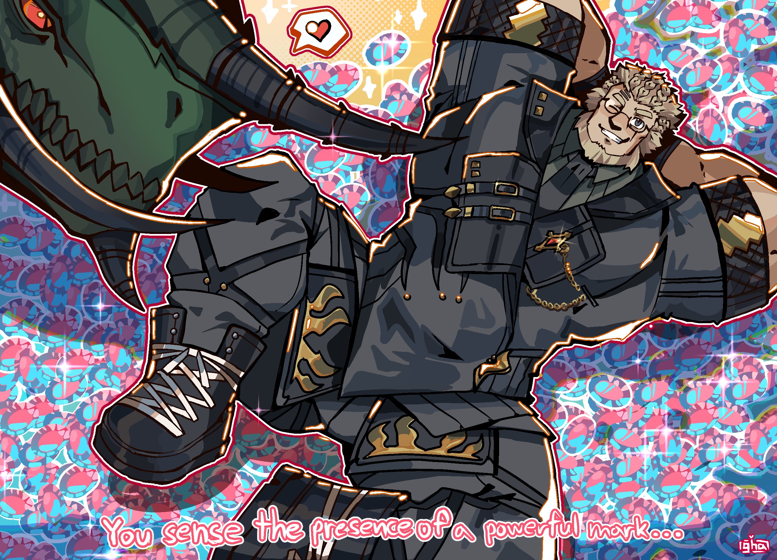 Wanted to get something for my hunt train announcements that captured everything that people know me for! "You sense the presence of a powerful mark" for hunts, Vrtra for being my favorite character, and laying in a pile of bicolor gemstones since I'm always farming or grinding content, and it's like being on a dragon's hoard of treasure. And of course, featuring my Warrior of Light Moga. We need more Roe love!!