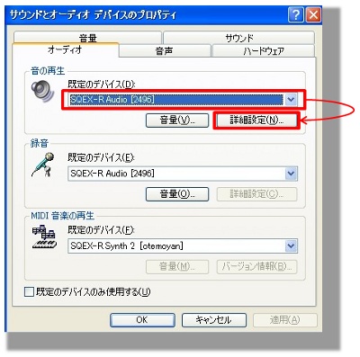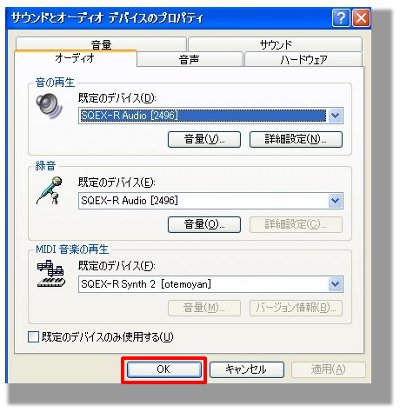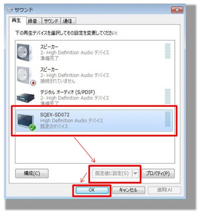 ※ご利用の環境がWindowsXPの場合は『5.1ch音声出力の設定方法(Windows XP)』内の手順「5」、WindowsVista/Windows7の場合は『5.1ch音声出力の設定方法(Windows 7,Vista)』内の手順「6」でご確認いただけます。