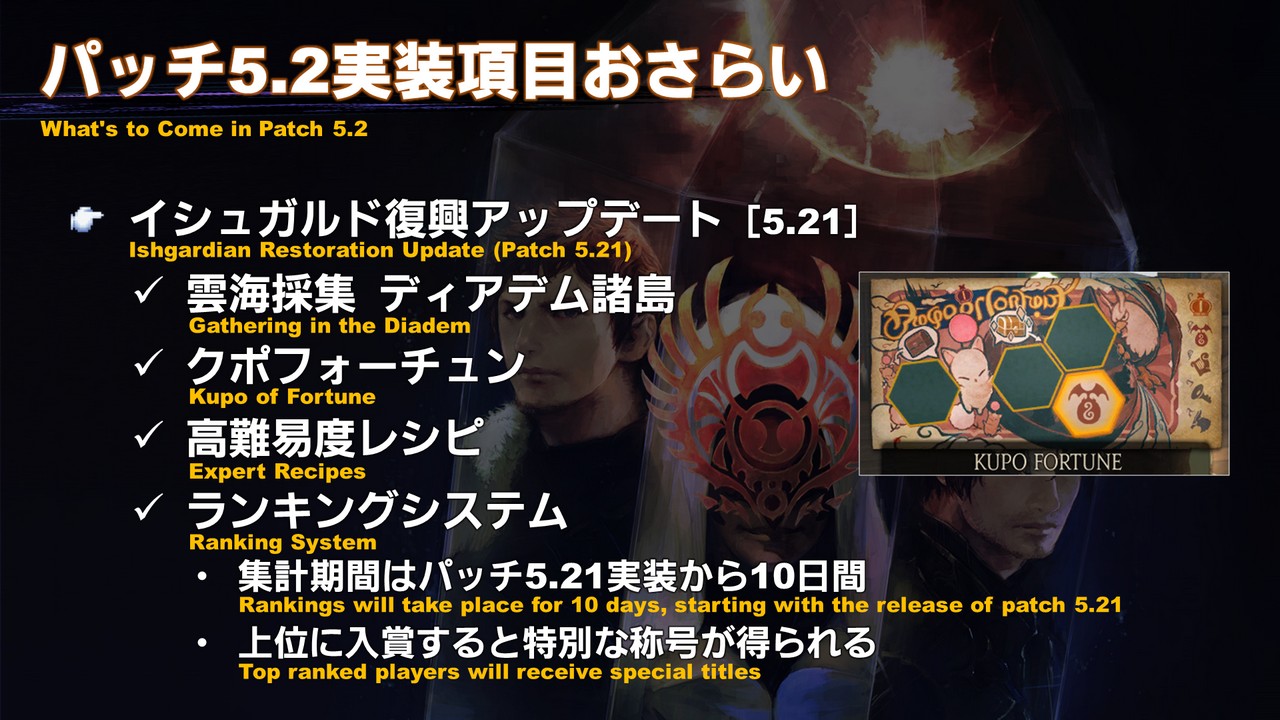 パッチ5.2実装コンテンツ特集Part2では、パッチ5.2実装項目について実機を交えながらご紹介します。