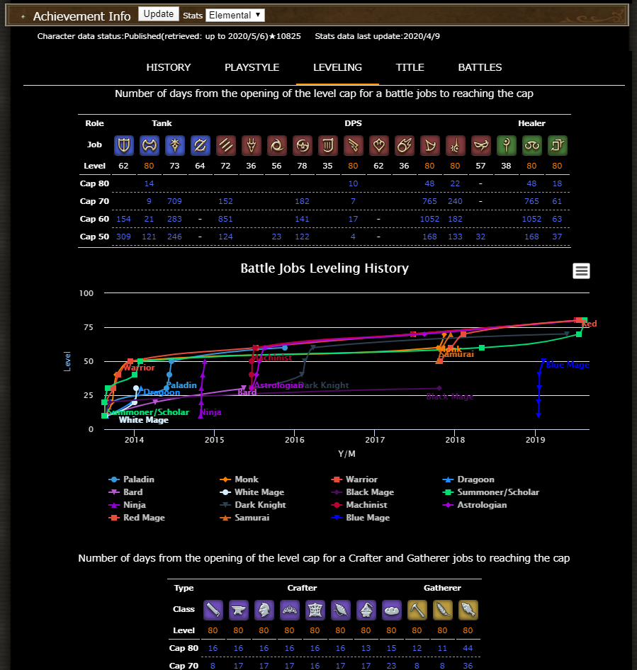 I really like the Battle Jobs Leveling History graph. Very cool tool! Not super useful, but neat to look at.