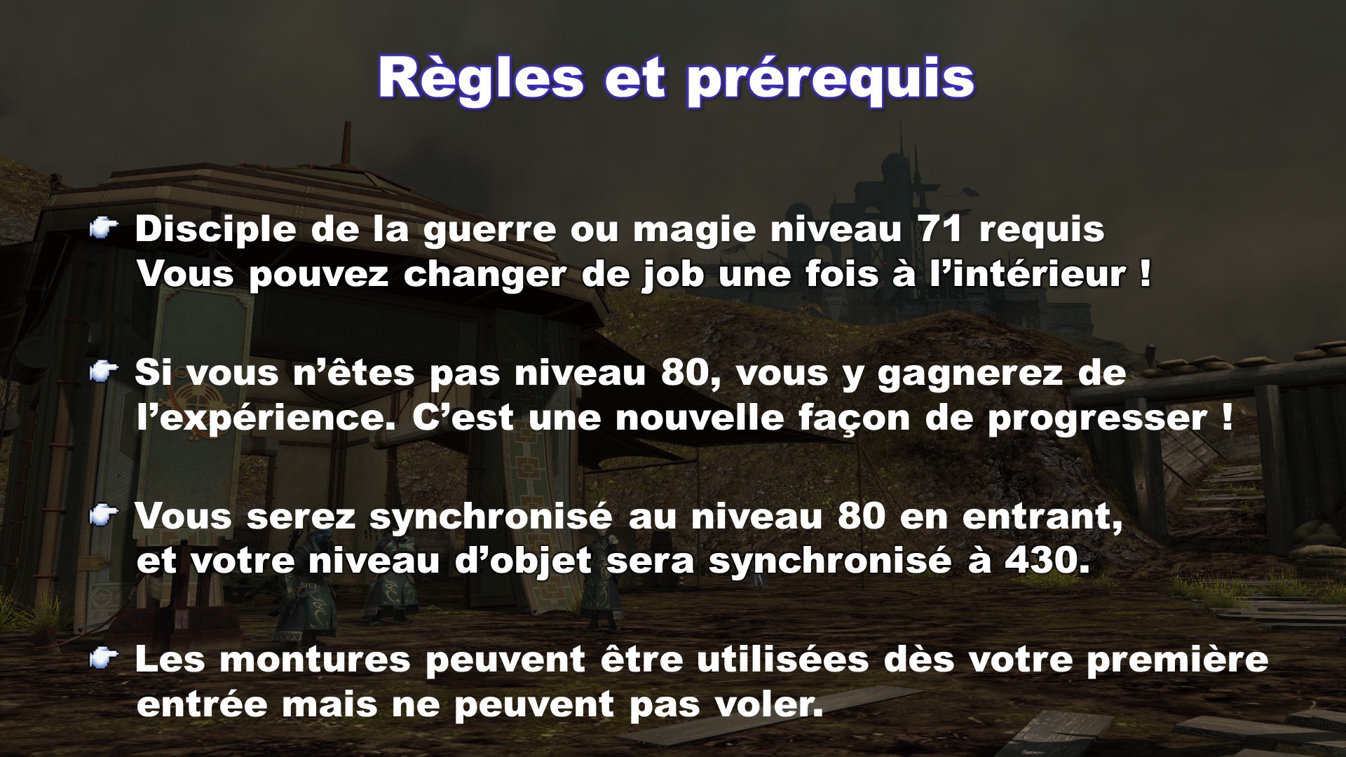 Ces zones n'ont à l'origine pas été créées pour pouvoir y voler, c'est pourquoi vous allez peut-être trouver qu'il n'y a pas beaucoup d'endroits où vous pourrez atterrir, comparé aux zones de Heavensward et des extensions suivantes.