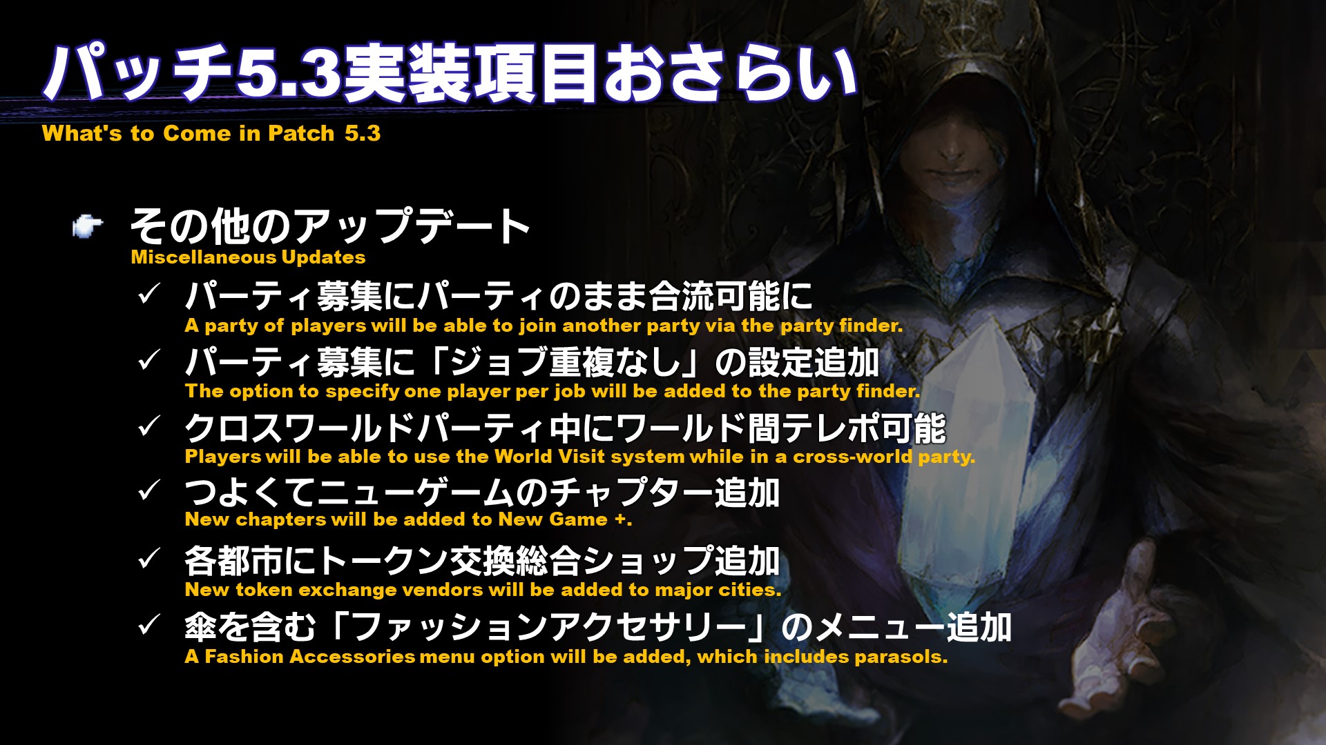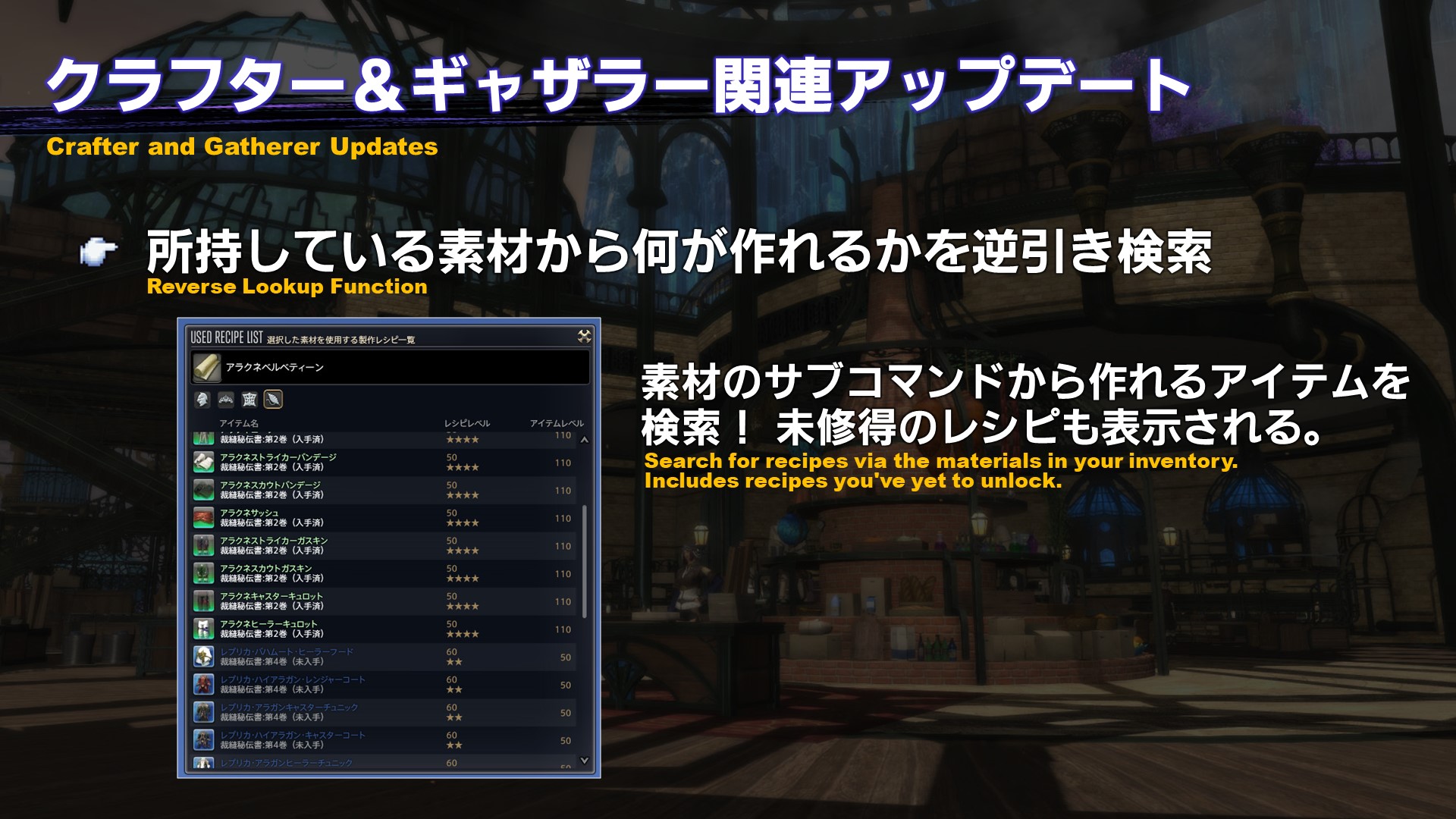 Patch 5.3 will bring additional quality-of-life features, which you can read more about in the images above. We also demonstrated Quick Desynthesis through gameplay footage.