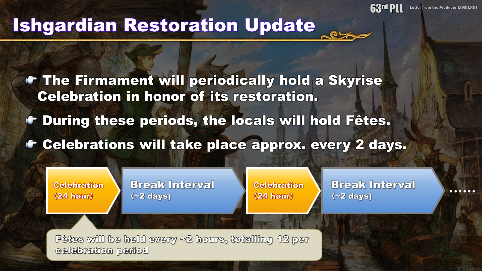With the restoration complete, the Firmament will periodically hold a Skyrise Celebration. These 24-hour events will be held approximately every two days, so you can participate at your own leisure. The starting times of celebration are made so they shift slightly each time, so even those who can only play during a certain timeframe will be able to participate in the Fêtes.