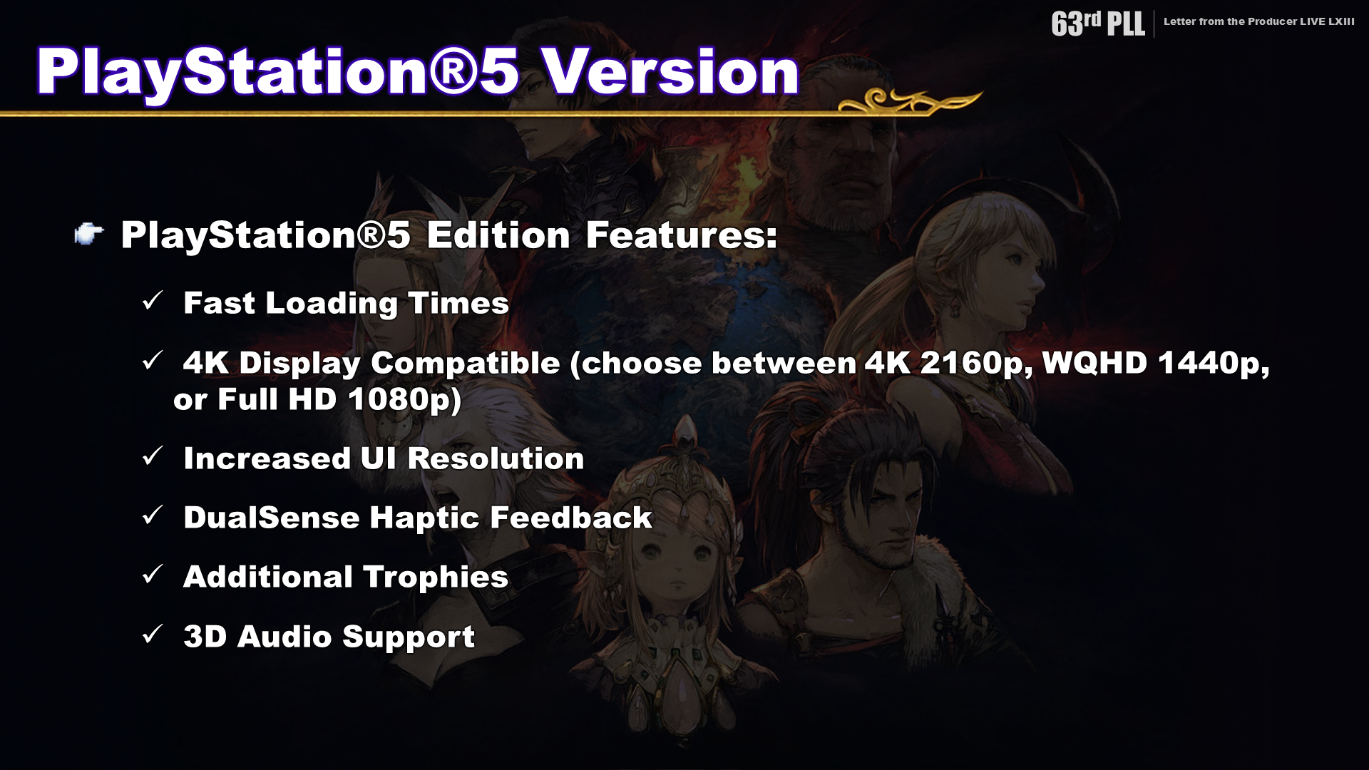 We went over the PlayStation®5 version’s features and showed gameplay footage of the high-resolution UI and fast loading times using teleport. We also showed the new emote search feature, as well as new minions and mounts, which can be seen in the video.