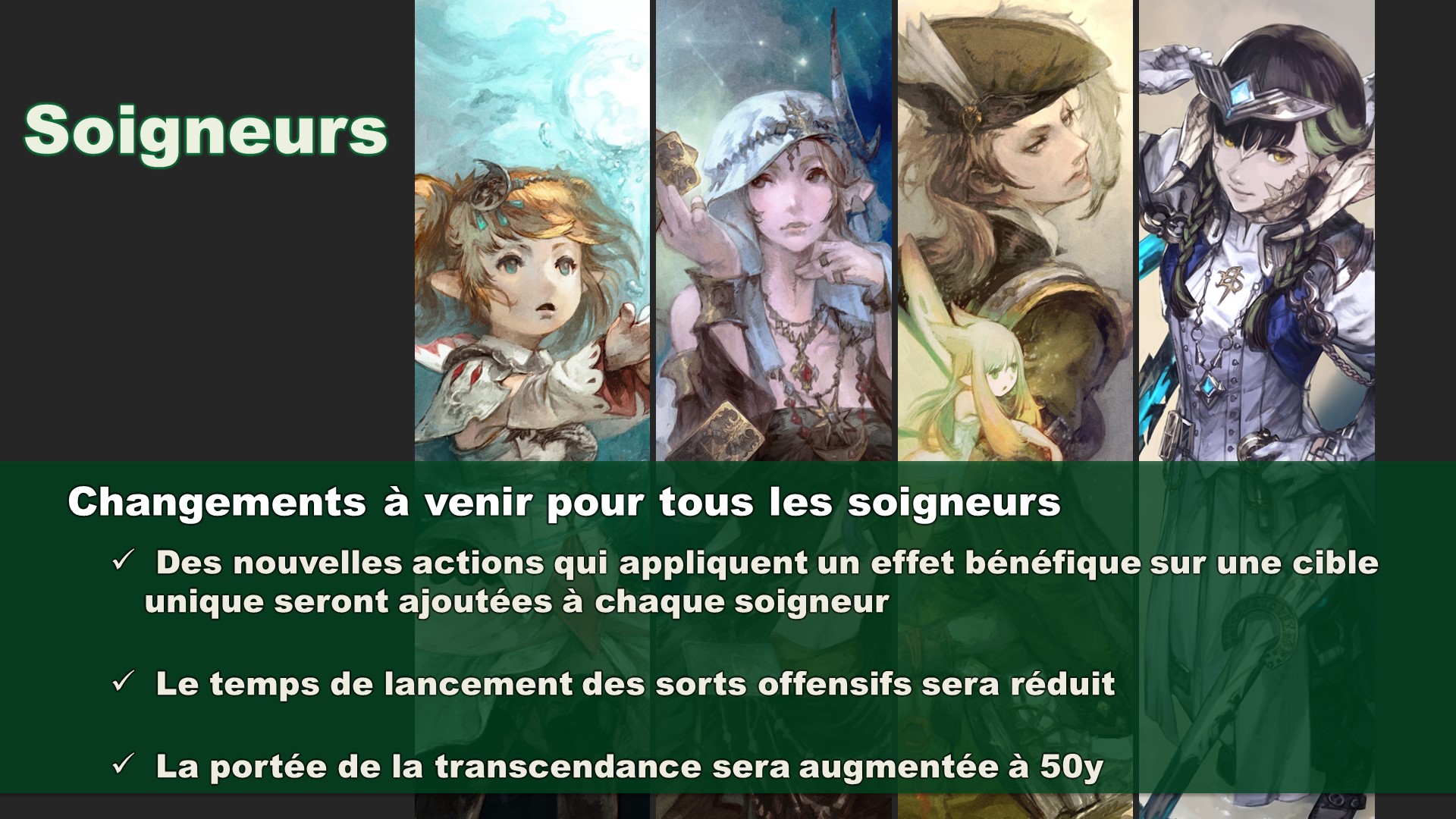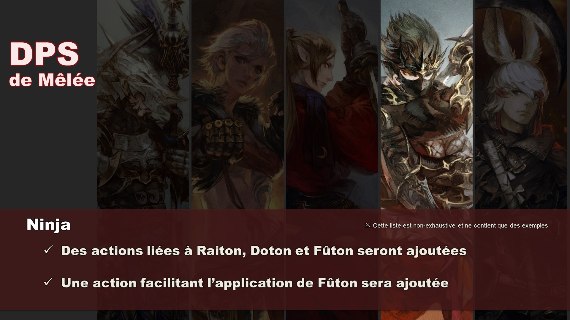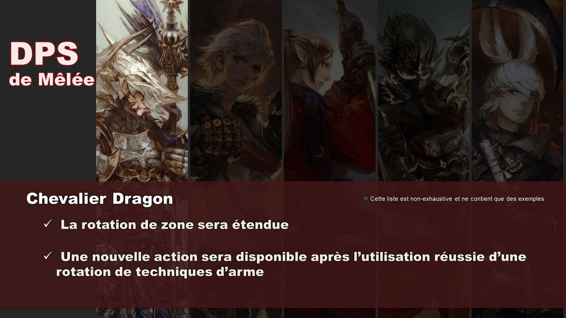La direction de ces ajustements suivra la base établie à la 5.0, pour Shadowbringers. Bien qu’il y ait de nouvelles actions, notre objectif global n’était pas d’étendre les jobs avec de nouveaux systèmes ou d’ajouter de la complexité. Ceci dit, chaque job sera ajusté à un certain degré, certains plus que d’autres, et nous nous sommes focalisés sur l’introduction de ces nouveaux aspects pendant l’émission.