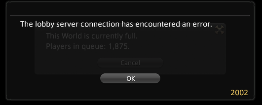 Can confirm. I just got booted out but was able to get back in quickly enough to keep my spot. Frustrating that you can booted even from queue, but I also completely expected this. For those complaining, SE knew this was going to be a problem and tried to get more infrastructure, but were stopped by the global shortages. It's not like they didn't try.my friend kept her queue so if you manage to get back into the queue past all the error 2002 in time then the game will keep the queue but there is some kind of time protection that if you go over it like me then it puts you back at the end of the line I guess... so lobby error 2002 is the first rng layer to get into queue then have to contend with it again if it boots you...