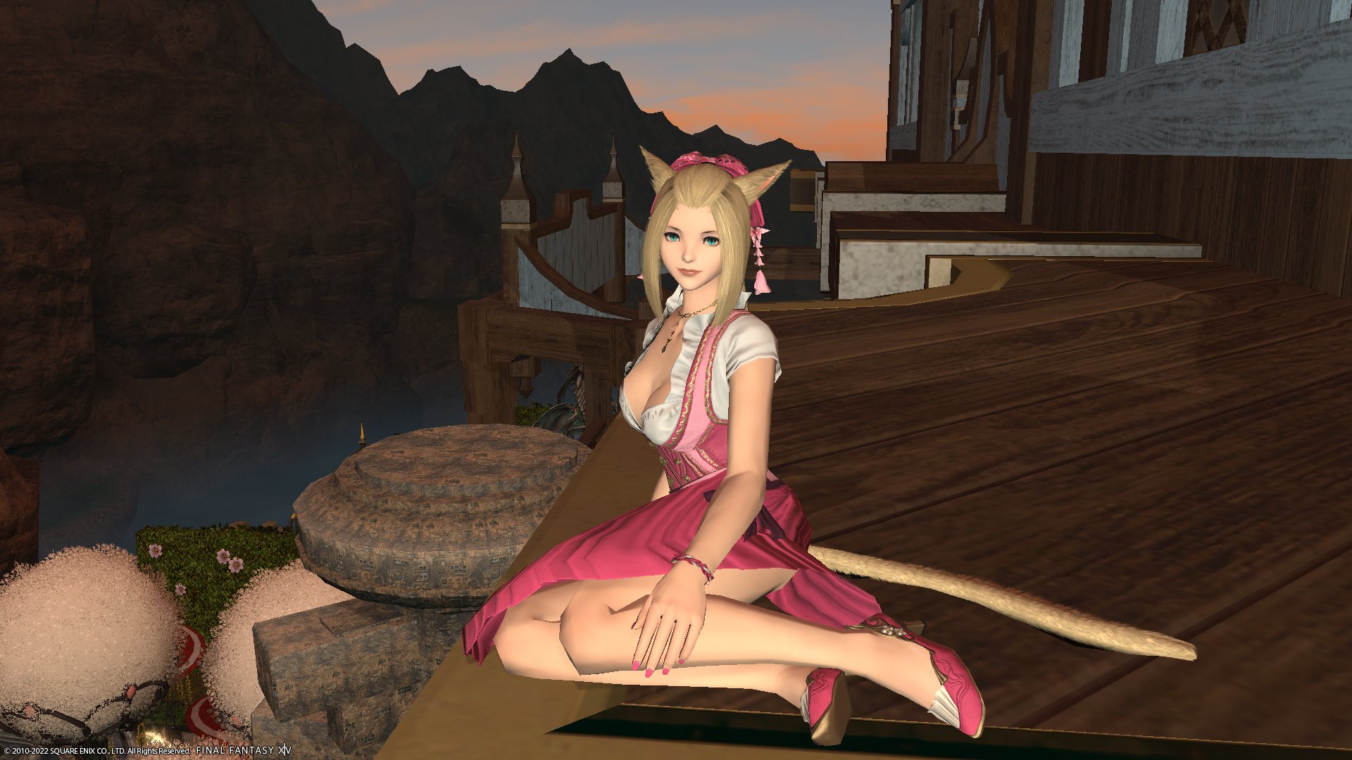 I switched temporarily from viera to miqote (for dem hats) and I was really only gonna stay temporarily but damnit I am having too much fun with hats and hairstyles so she is really growing on me. I do miss being tall.