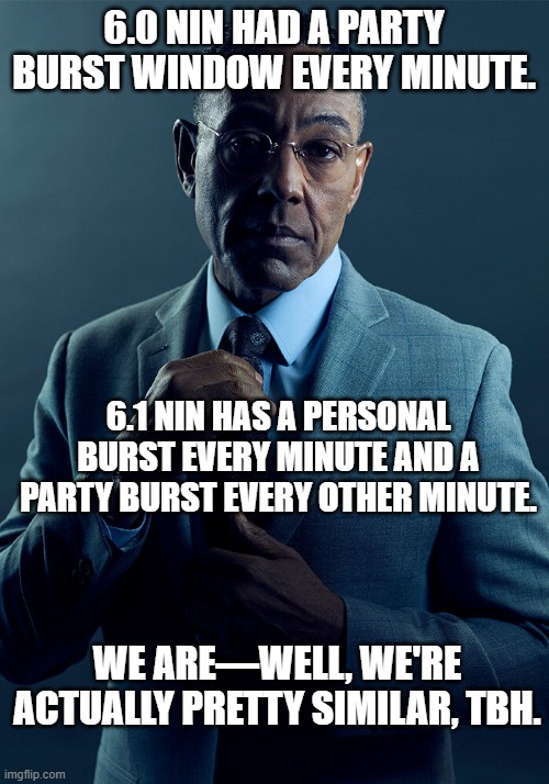 Tentatively, gonna be a meh for me. Trick gutted, nothing cool or interesting to really replace it and mug feels just as meh as before truth be told. A perfect example of changing too much, yet too little. Trick change dampened the fun had from a more buff based playstyle, and nothing new was added to make it cool and fun to satisfy old players and aspiring new players. At the end of the day, was it a good use of square's time and resources? Gonna have to say no. Even if people really love this iteration of ninja, it's just gonna change next patch anyway since the ninja devs consist of headless chickens. It's just meh. At least for once the nin devs aren't the worst Job team in the game, I've heard gyoten is part of the samurai meta.