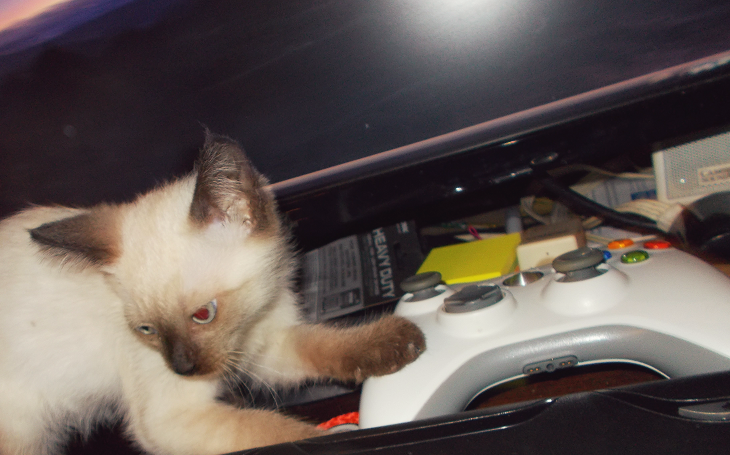 In the process of taking a generic picture of my generic setup I was interrupted by a furry interloper, so I'll just distract you from my crappy PC/setup with her instead.
