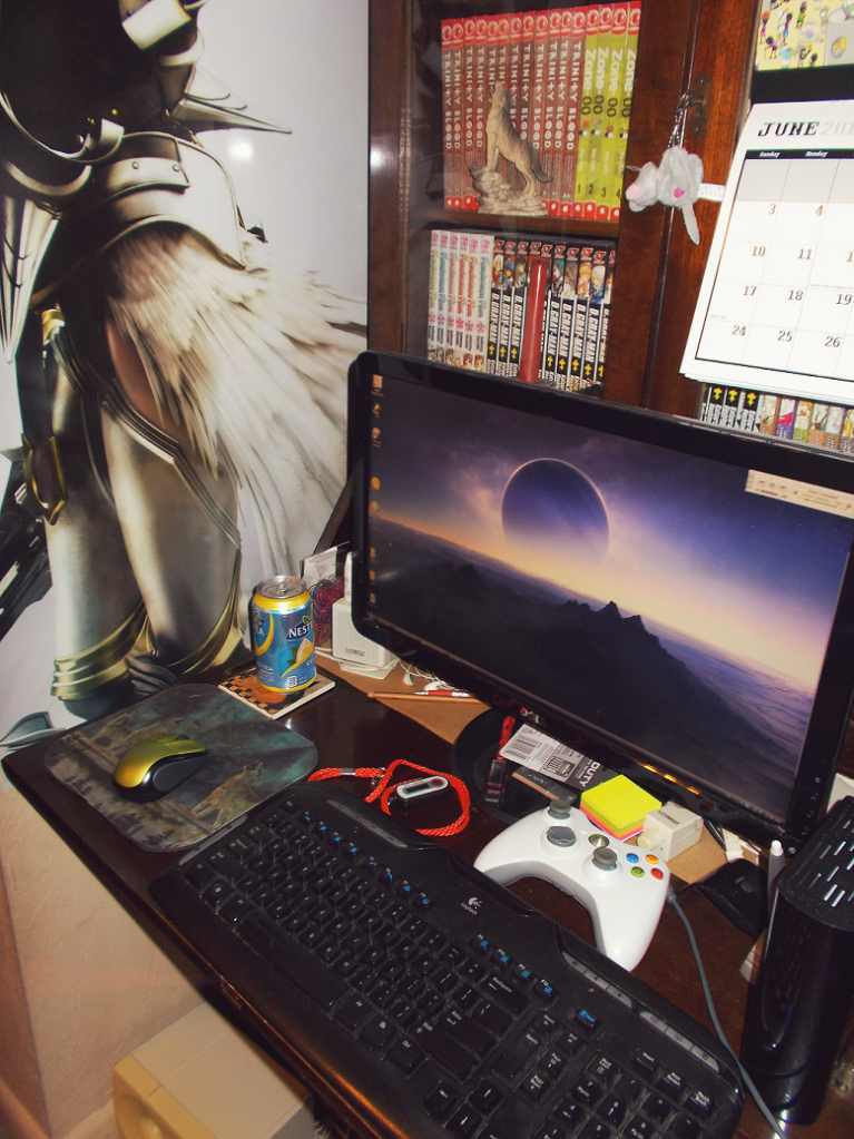 Bwahahah, my desk isnt tidy at night. XD I have food, Plates, Trays. You name it, its there XD