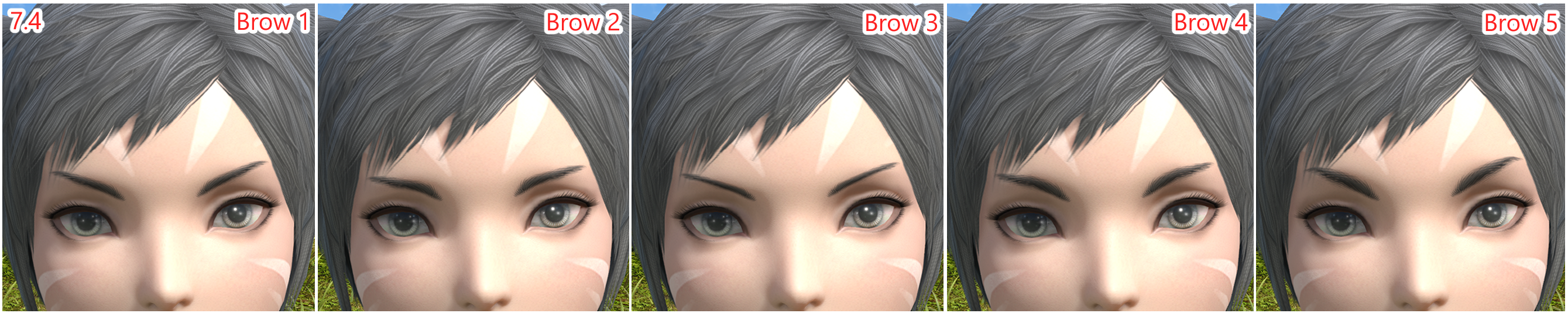 In order to achieve an accurate graphical update, and for the 7.4 Resolved Issues quote of "An issue with the second female Miqo'te face option wherein eyebrows differed from their appearance prior to Patch 6.58." to be fully true, Issue #1 must be updated as well.