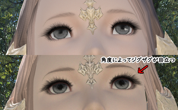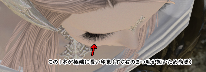 ・ミコッテ女性の瞼がベンチマークのムービー中に睫毛に食い込み干渉しているので確認をお願いしたい(画像2/顔のタイプ1、目のタイプ4)